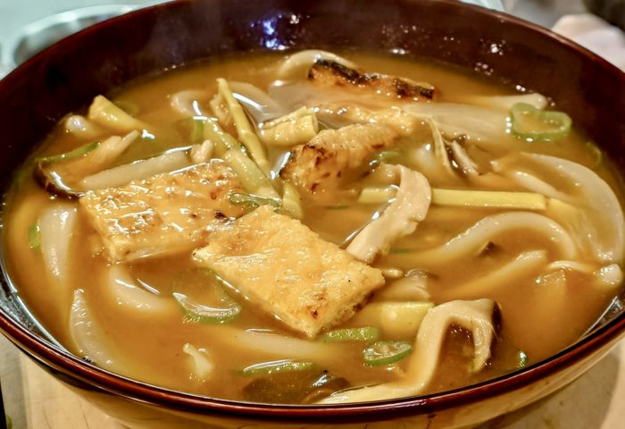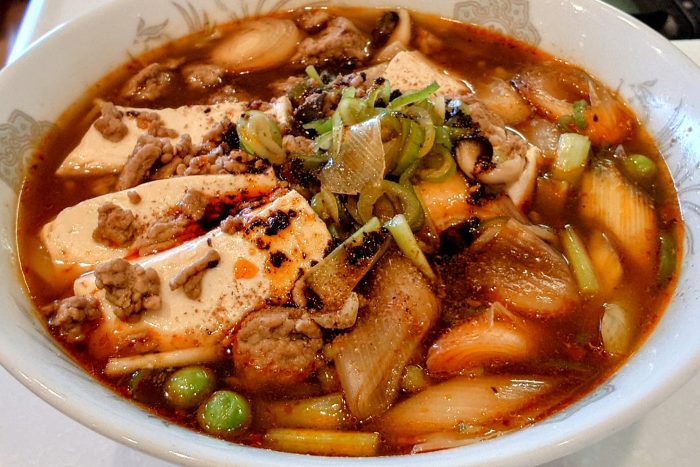 麺は半分、只管豆腐と葱は2種、蕪の茎も