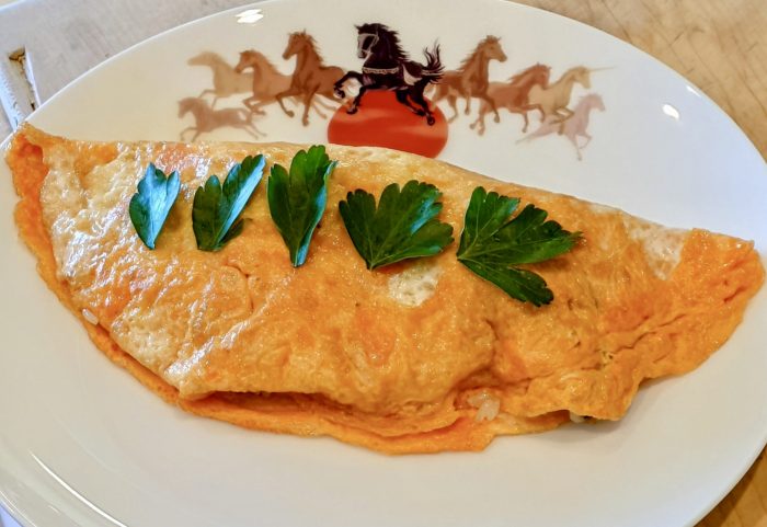 リッチなバターと我が家のオリーブオイルで卵焼き