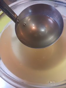 その後、約1時間で火を止め、漉したスープが冒頭の画像です。