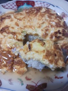 途中で水を足さずにとったので濃厚に。このスープをたっぷり使って、今回は天津飯にしました!