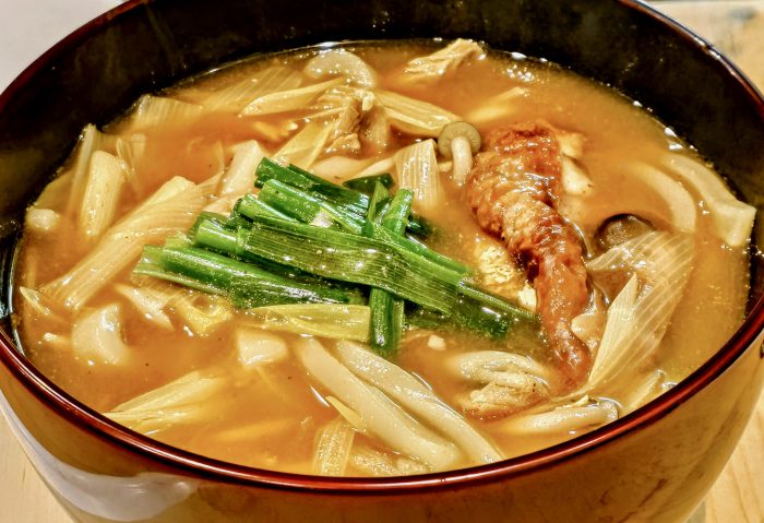 九条ねぎと軍鶏のローストチキンとしめじのカレーうどん