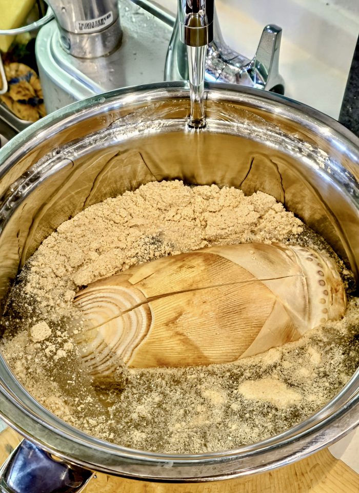 たっぷりの水と糠で下拵え