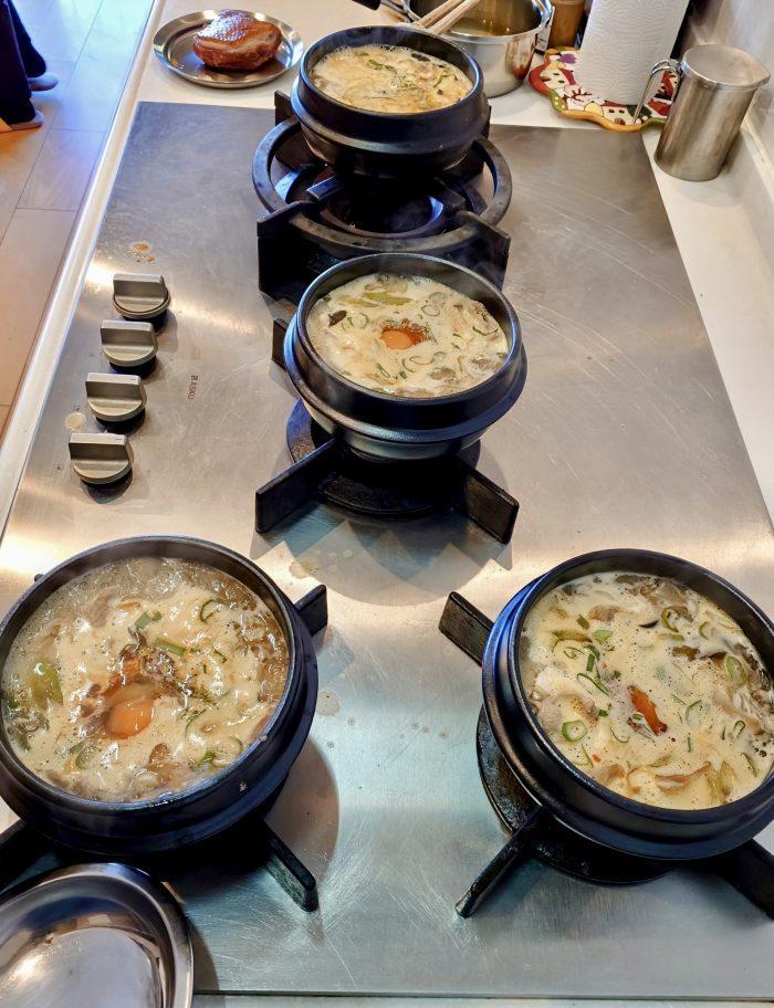 神社の賄いのスンドゥブを仕上げる