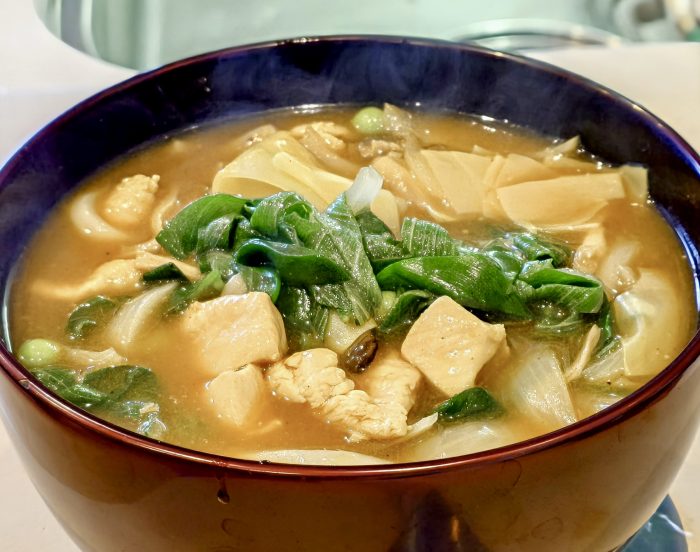 軍鶏と上賀茂ねぎのカレーうどんを完食した息子が