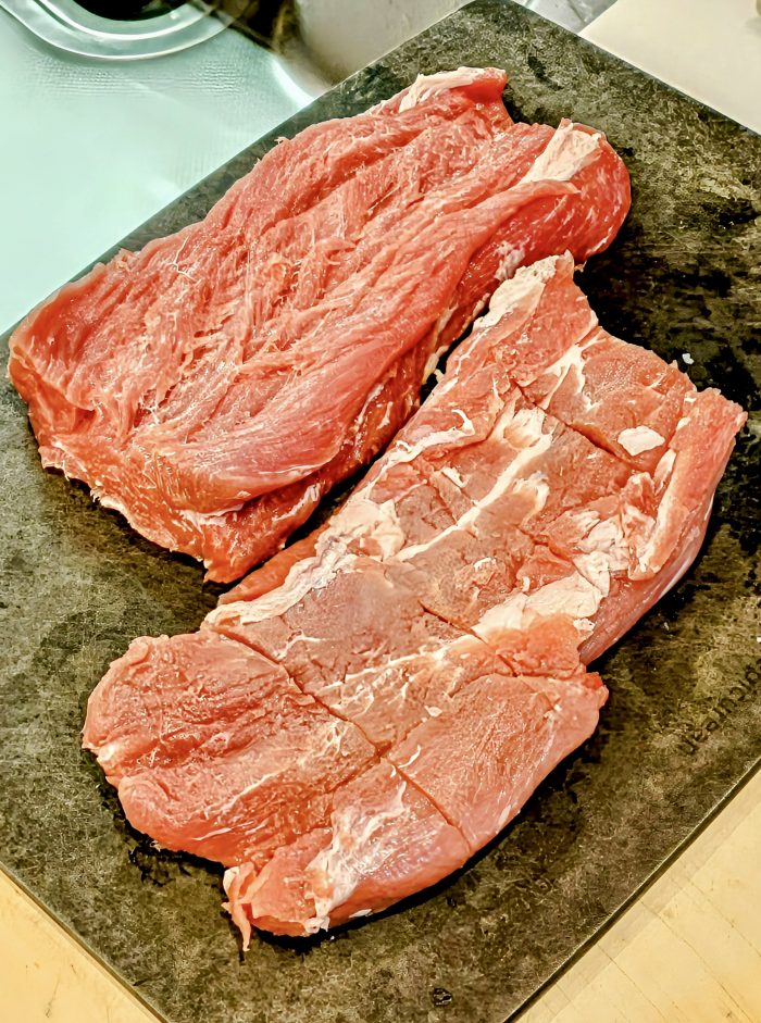 私は梅山豚の熟成ヒレ肉でカツを揚げる