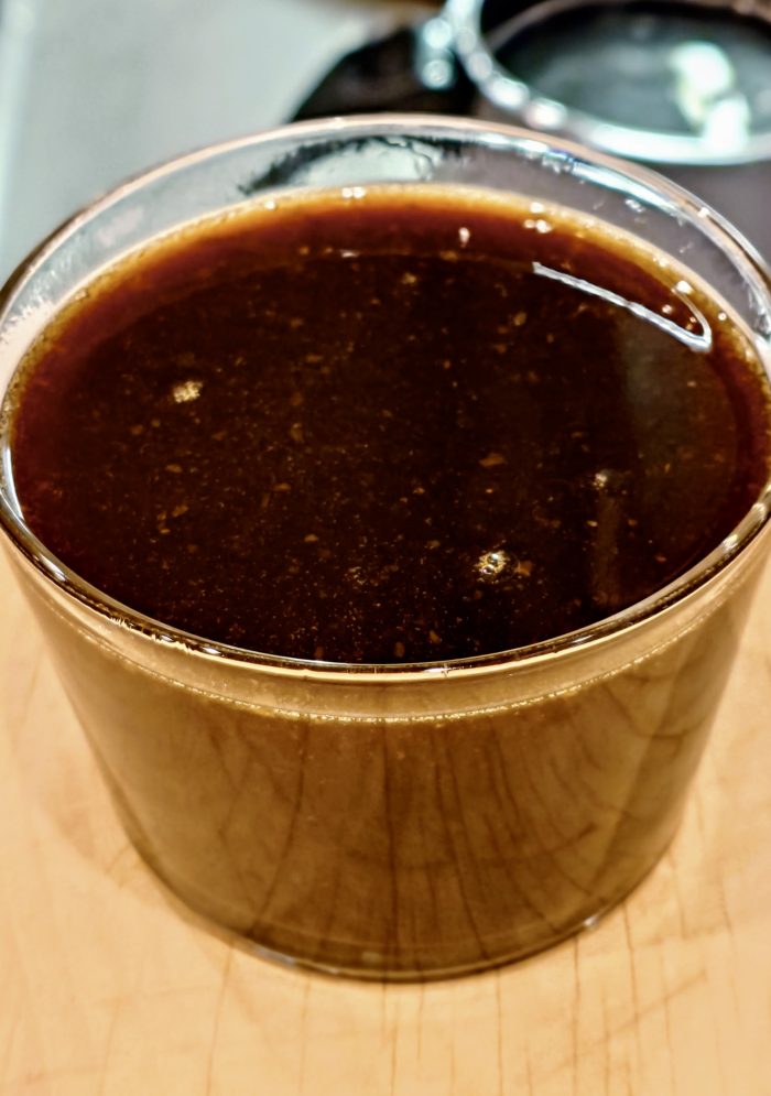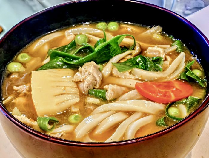 うどんを食べ終わって、熱々ご飯をドボンしている・・・