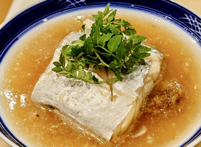 一番出汁と城州白の梅干しと少しの薄口醤油と日本酒で煮る