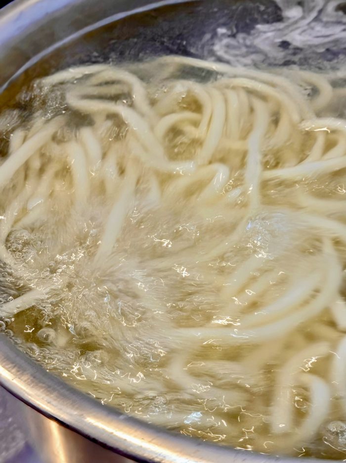 白い部分は熱々のうどん汁をかける