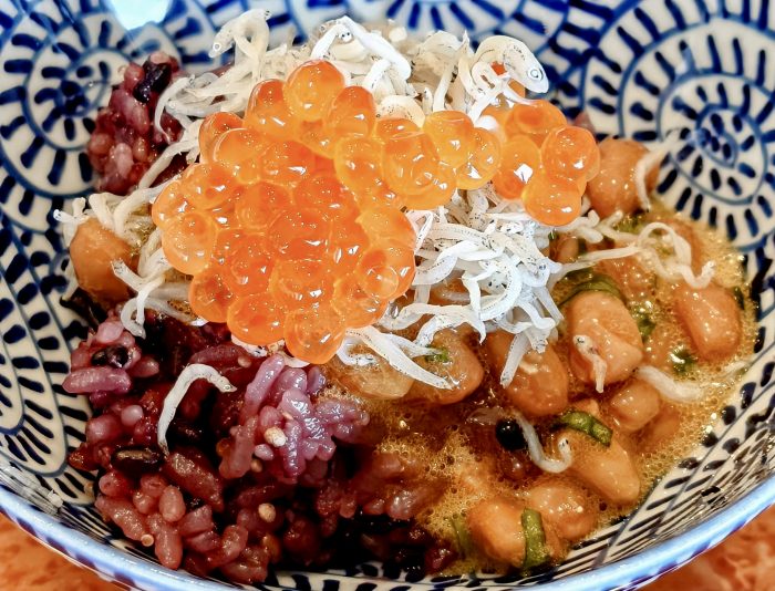 銀聖の塩いくら、しらす、糠漬け、超熟成芝崎納豆